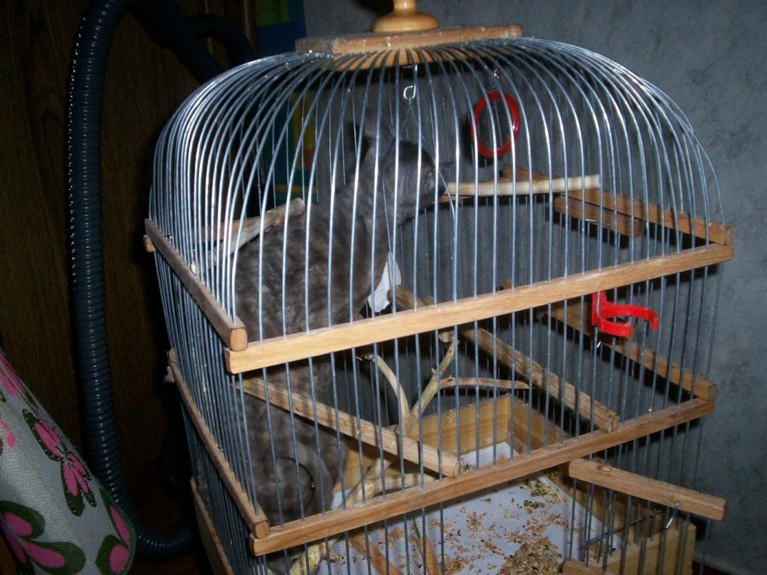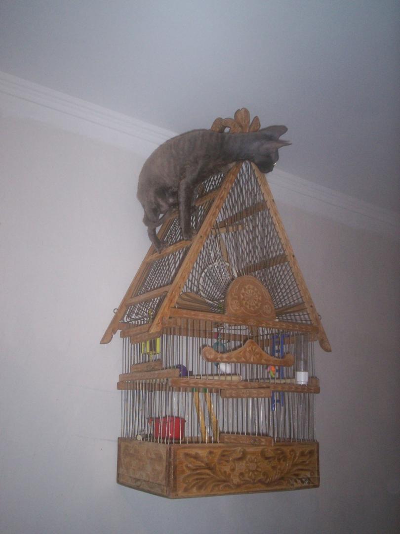 Кису любят все члены семьи. Но она позволяет себя потискать только когда сама захочет. Собакин другой, он более ласковый и навязчивый. Собакам много чего нельзя, в том числе и сладкое, которое периодически подкидывает киса. Есть волнистики и жако. Это объекты ее медитации, гипноза, а так же объекты охоты. Волнистиков на лету хватает и запихивает в пасть лапами, еле отбили одного. За большого попугая ей тоже достается. А замучить его оч оч хочется. Она запрыгивает на крышу клетки, просовывает лапу через прутья, и пытается его достать, шевелит когтями, а попугай спрашивает у нее "а что такое? а что такое?" Да, кисун конечно шкодливая, но не гадит хозяевам где попало, умничка, оч чистая девочка.