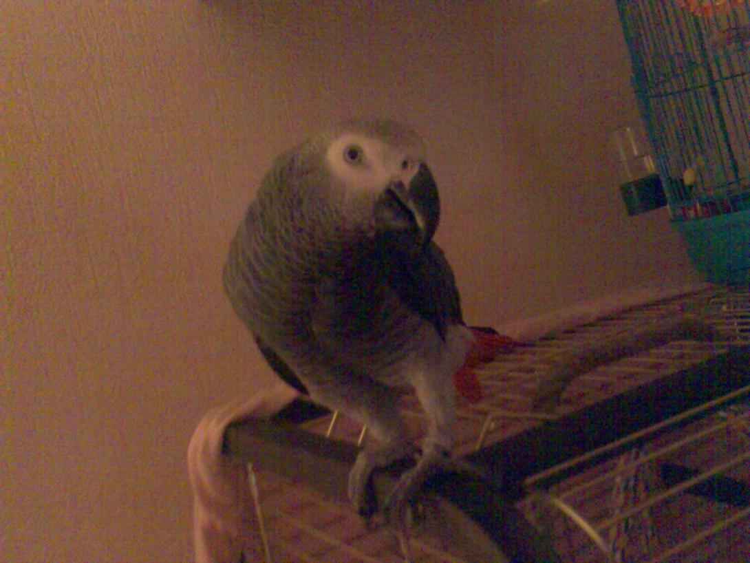 Картина смешная, но печальная. Волнистик с кровавым пузом это заботы и переживания. Попугаи жако оч интеллектуальные, запоминают много слов,с ними можно вести беседы. Наш жако пародирует голоса,интонации всех членов семьи (человеческие и звериные), звуки, музыку и т.д.. Слова мата сказанные один раз на эмоциях запоминаются мгновенно. Он как и любая животина большая радость, большая ответственность, большая забота и большая уборка :)